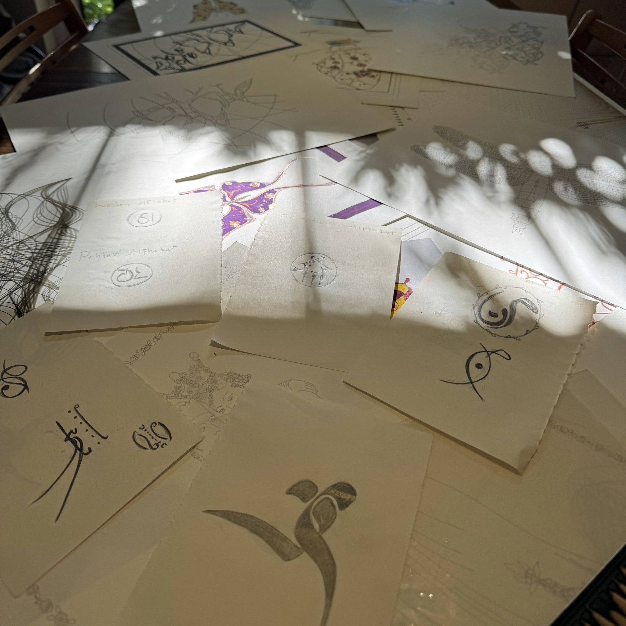 Our bespoke offerings extend beyond scarves. Working closely with clients, Nazanin can adapt her signature aesthetic into other formats—such as custom wallpaper, textiles, or objects for the home—each infused with the Maison’s poetic visual language. Whether it’s a hand-printed wall hanging for a reading room, or a set of silken accessories for an intimate event, we shape each piece not just to decorate, but to evoke. Here, design is not about display—it is about memory made visible, and longing made luminous.